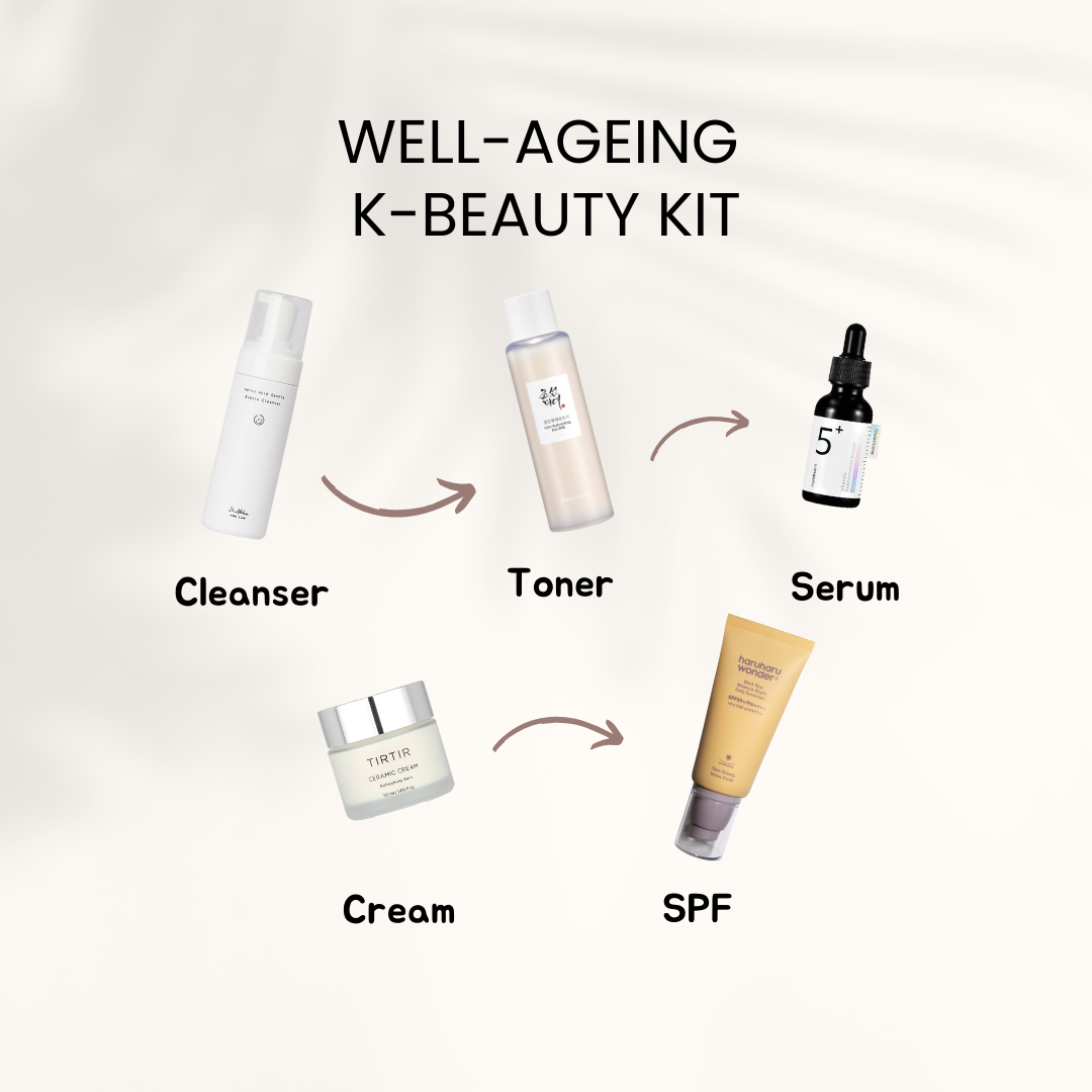 We're all about 'well-ageing' at Beauty & Seoul, not anti-ageing as we believe ageing is a privilege! All the products in this kit have been chosen as they help firm and nourish the skin which can lose elasticity and moisture as we get older. This kit includes the basic steps that form the basis of your skincare routine: